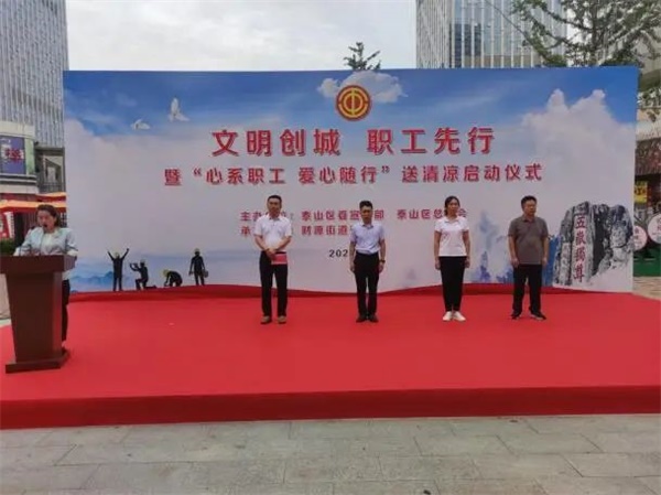 為全面深化我區(qū)全國文明城市創(chuàng)建工作,進(jìn)一步提升全區(qū)整體文明程度,提高創(chuàng)建水平,鞏固創(chuàng)建成果,8月7日,泰山區(qū)“文明創(chuàng)城職工先行”主題活動暨“心系職工 愛心隨行”送清涼啟動儀式在泰安萬達(dá)廣場舉行。