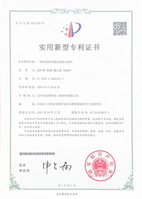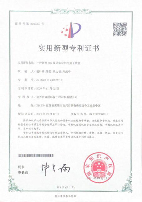日前,公司又有五項實用新型專利獲得國家知識產(chǎn)權(quán)局授權(quán)。近年來,為貫徹公司“科技創(chuàng)新,為人類創(chuàng)造美好生態(tài)環(huán)境”的使命,公司非常重視研發(fā)創(chuàng)新,不斷加大科研投入力度,積極開發(fā)具有自主知識產(chǎn)權(quán)的技術(shù)和產(chǎn)品。截止目前,公司已取得30余項國家專利的授權(quán)。這些專利成果為公司今后的發(fā)展積蓄了前進(jìn)的動力,進(jìn)一步提升了公司產(chǎn)品的科技含量,提高企業(yè)核心競爭力,為公司的發(fā)展提供了強有力的科技支撐。
